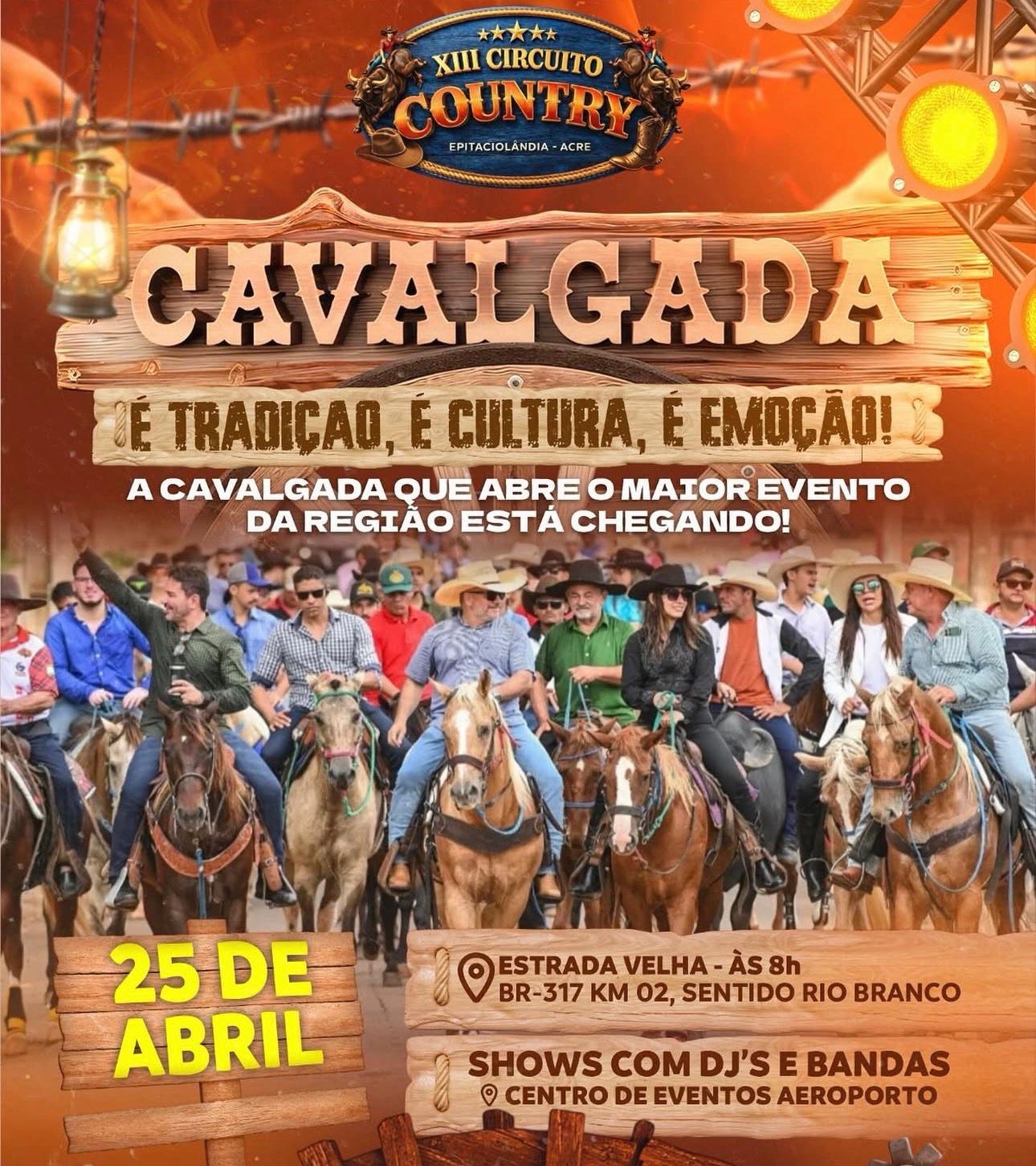 XIII Circuito Country movimenta Epitaciolândia de 25 de abril a 3 de maio com cavalgada, rodeio e shows nacionais 13 de abril de 2026