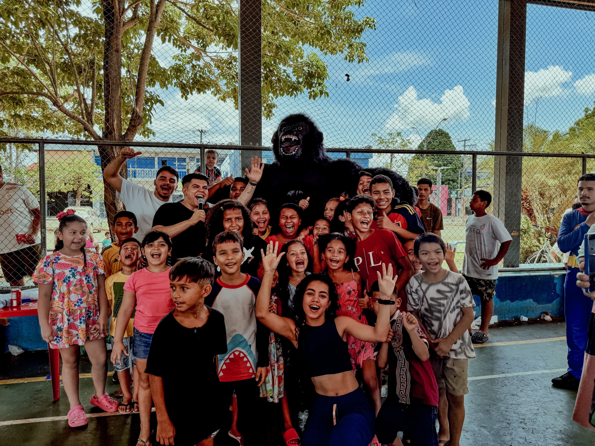Organizado pela equipe do Alerta Cidade, o evento contou com brinquedos infláveis, distribuição de presentes, lanches, música e diversas brincadeiras. Um dos momentos mais esperados foi a presença do Gorilla Sat, atração que fez sucesso entre os pequenos com abraços e interações cheias de carinho.