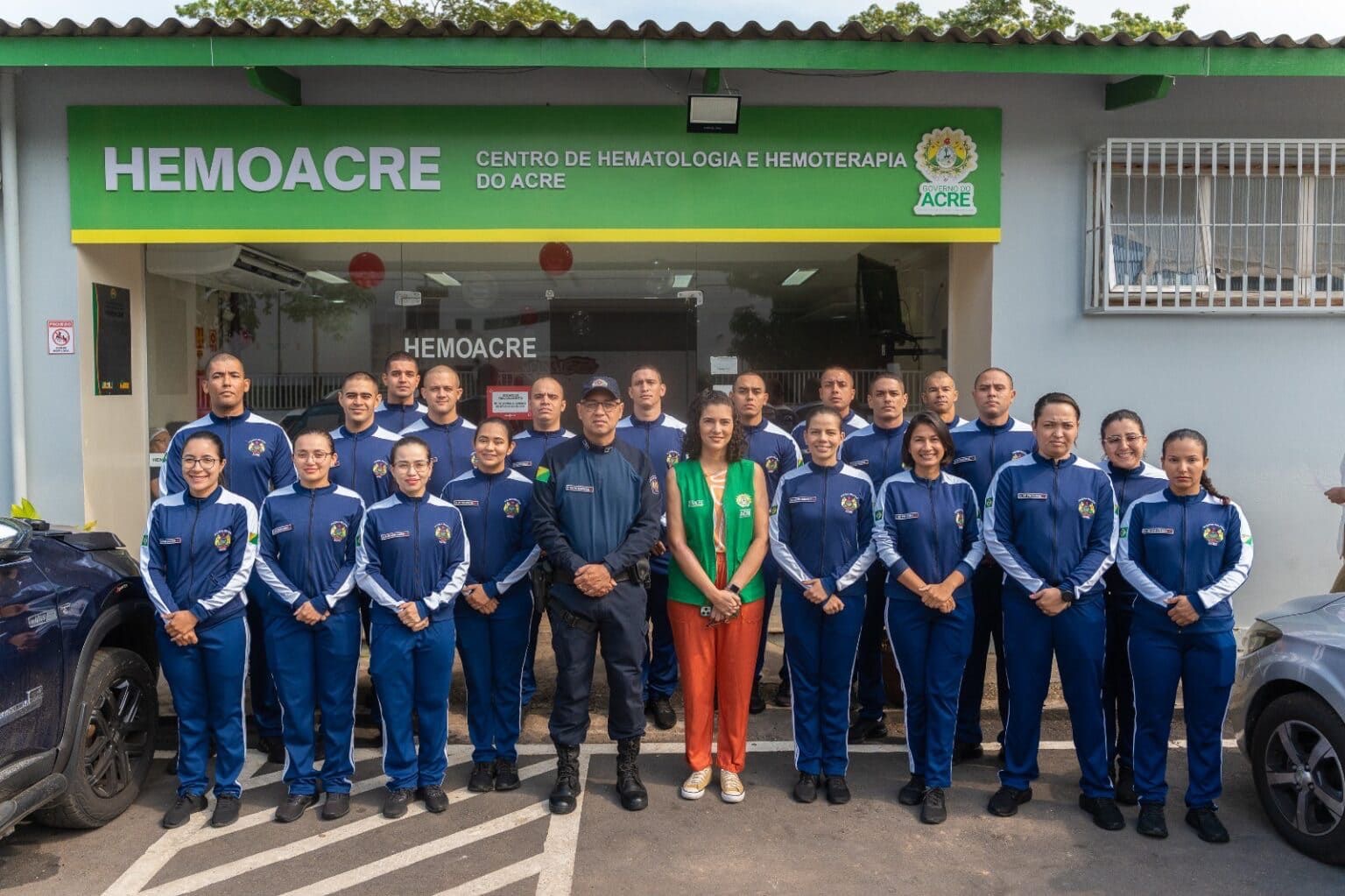 Alunos-oficiais do Curso de Formação de Oficiais (CFO 2024/25) da Polícia Militar do Acre (PMAC) doaram sangue e se cadastraram como doadores de medula óssea na manhã desta quinta-feira (09), no Centro de Hematologia e Hemoterapia do Acre (Hemoacre).
