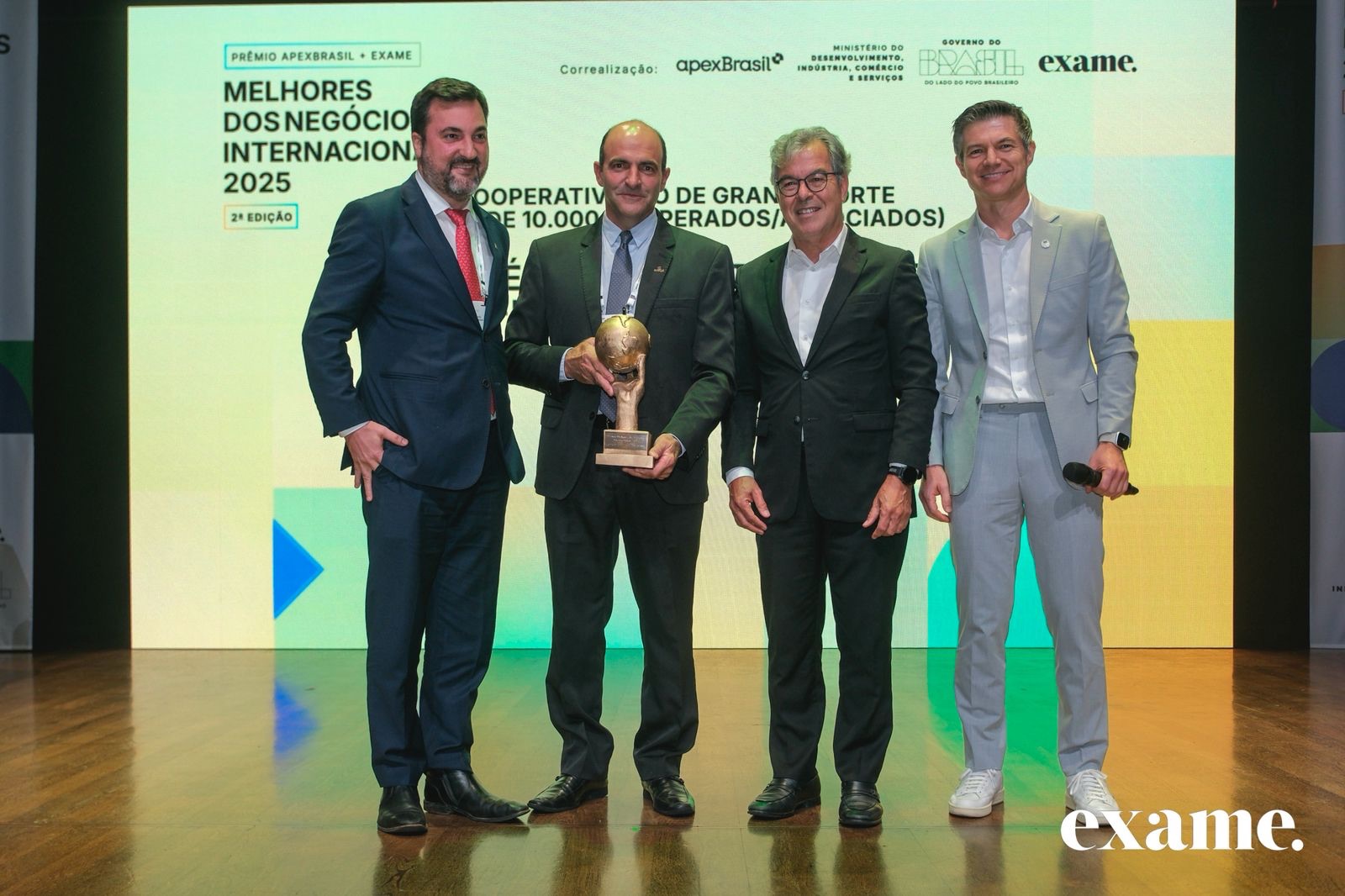 A expressiva participação de empresas brasileiras no comércio internacional ganhou mais um capítulo de reconhecimento na noite desta quarta-feira (4), durante a entrega do Prêmio ApexBrasil-Revista Exame – Melhores dos Negócios Internacionais 2025, realizada no Teatro B32, em São Paulo. A premiação homenageou companhias, startups, cooperativas e iniciativas setoriais que impulsionaram a produção nacional e se destacaram pelo desempenho, inovação e capacidade de abrir novos mercados ao longo do ano.