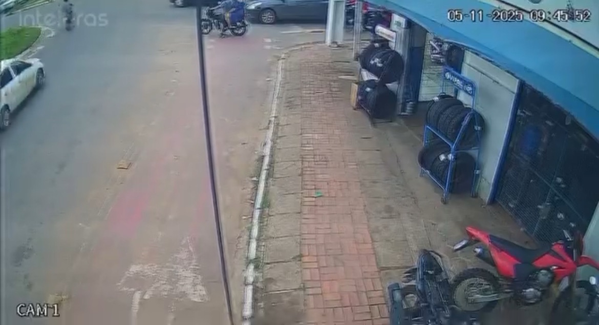 Na manhã desta quarta-feira (5), um acidente entre duas motocicletas foi registrado por câmeras de segurança na rotatória da Avenida Antônio da Rocha Viana, em Rio Branco.