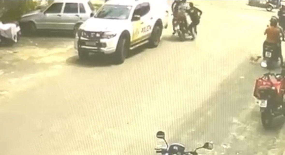 Apesar do atropelamento, o militar conseguiu se levantar rapidamente e deu continuidade à abordagem. Já a dupla que ocupava a motocicleta perdeu o controle do veículo e caiu alguns metros à frente.