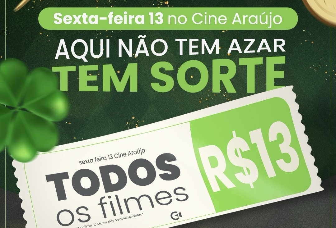 Se para muitos a sexta-feira 13 é cercada de superstição, no Via Verde Shopping a data será marcada por oportunidade e diversão. No dia 13 de fevereiro, o Cine Araújo promove uma ação especial e todos os filmes em cartaz estarão com ingressos pelo valor único de R$ 13, válido para as salas sessões nas convencionais e Premium.