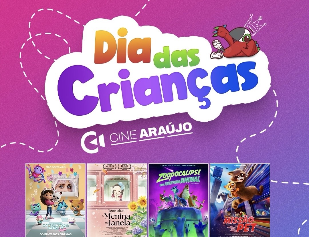 O Dia das Crianças vai ser de muita diversão no Cine Araújo do Via Verde Shopping. No domingo, 12 de outubro, o cinema preparou uma programação especial repleta de filmes encantadores e o melhor de tuco, com ingressos promocionais por apenas R$12.