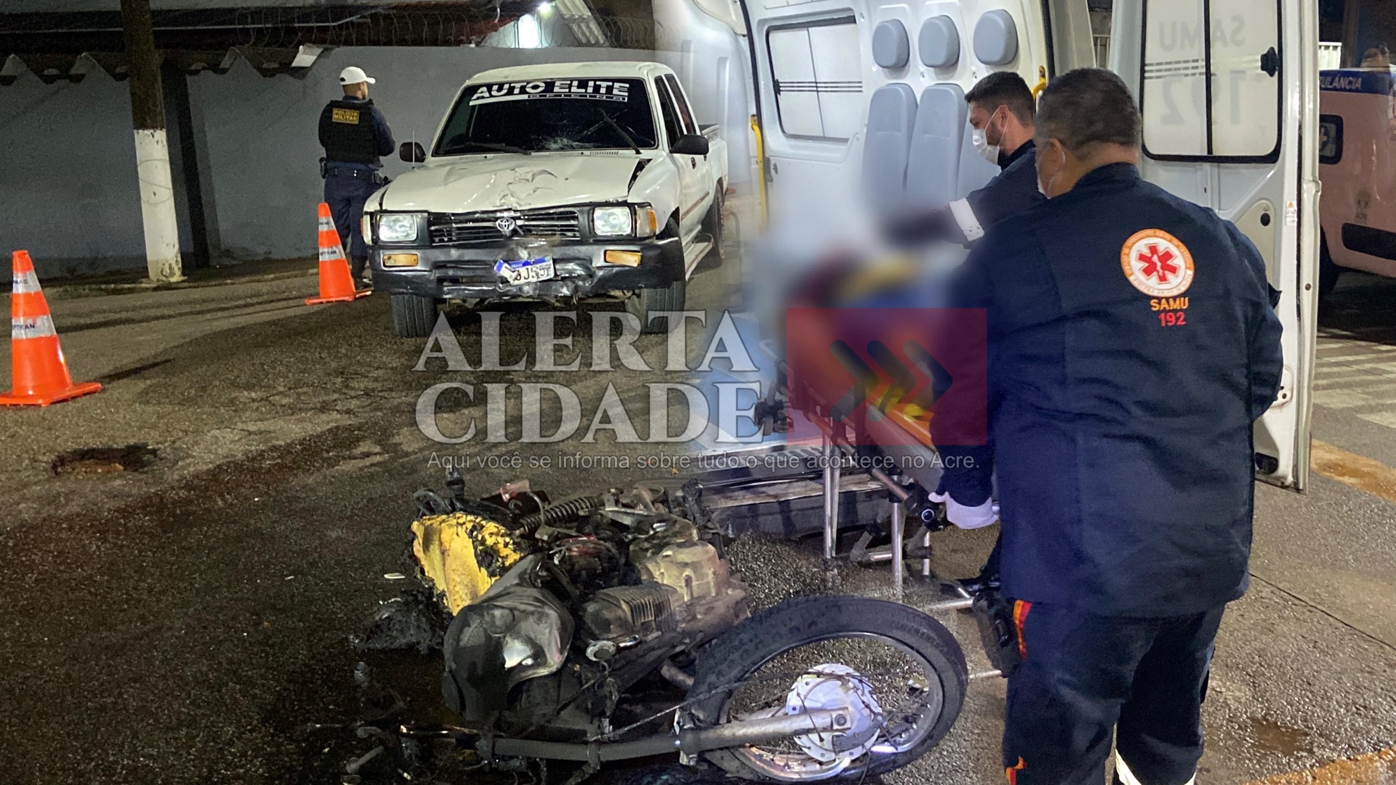 O acidente aconteceu na noite de sábado (06), na rua Isaura Parente, no bairro Estação Experimental, em Rio Branco.