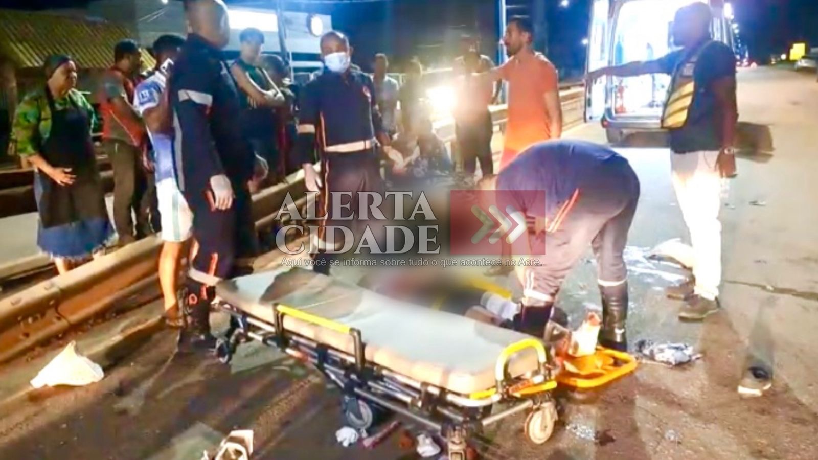 Um grave acidente envolvendo duas motocicletas deixou três pessoas feridas na noite desta quinta-feira (2), na BR-364, nas proximidades da Ponte da Judia, no bairro Belo Jardim I, no Segundo Distrito de Rio Branco.