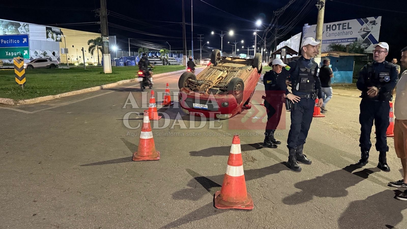 Um capotamento foi registrado na noite desta segunda-feira (09), na rotatória da rodovia AC-40, no bairro Corrente, em Rio Branco.