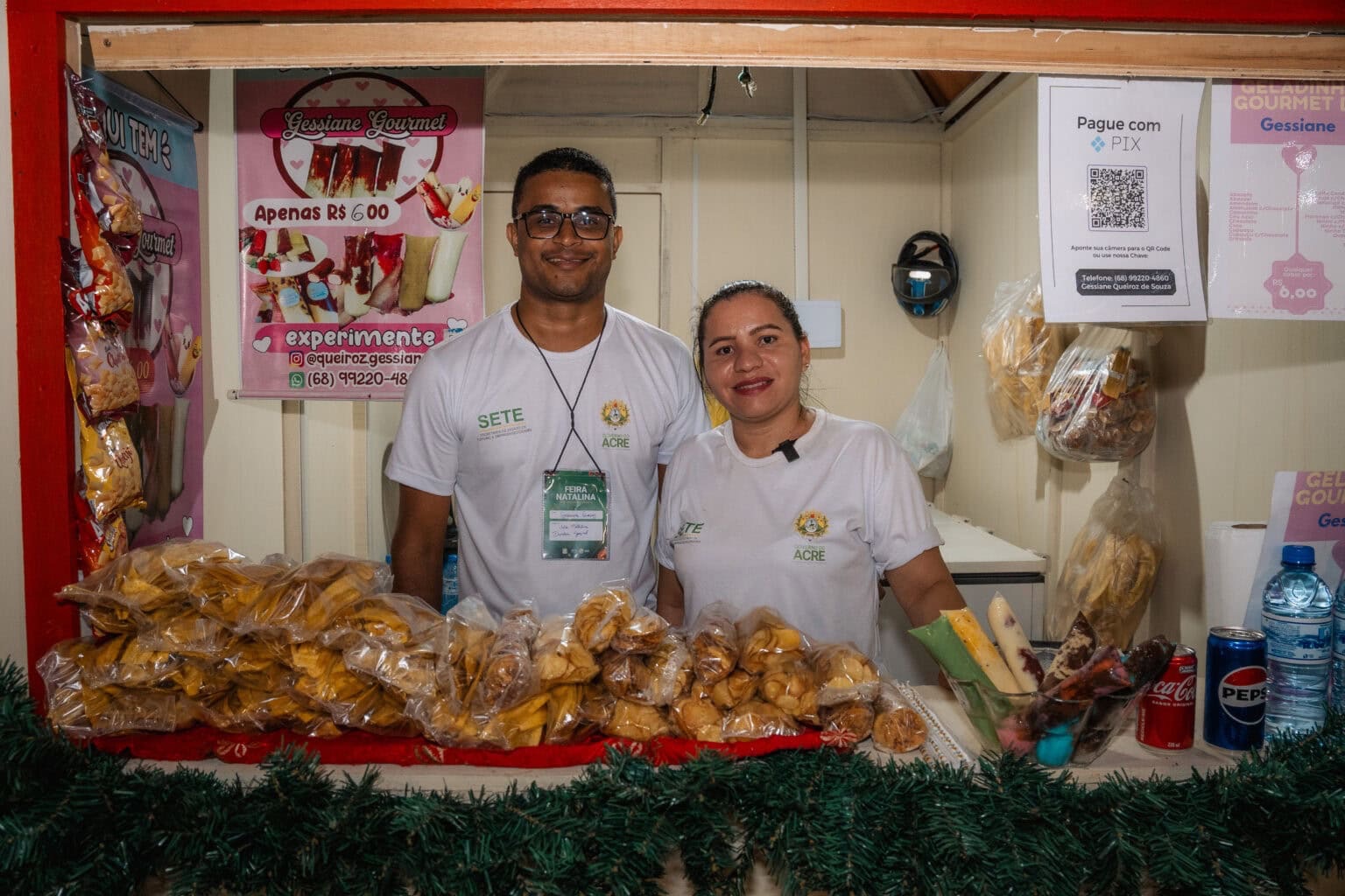 Além das vendas rotineiras, a empreendedora investiu nas vendas também na Vila Natalina, em frente ao Palácio Rio Branco: “Surgiu a oportunidade de estar aqui aqui na feirinha e aí trouxemos o produto pra cá e complementamos com bananinha, água e refrigerante”, acrescentou Gessiane.