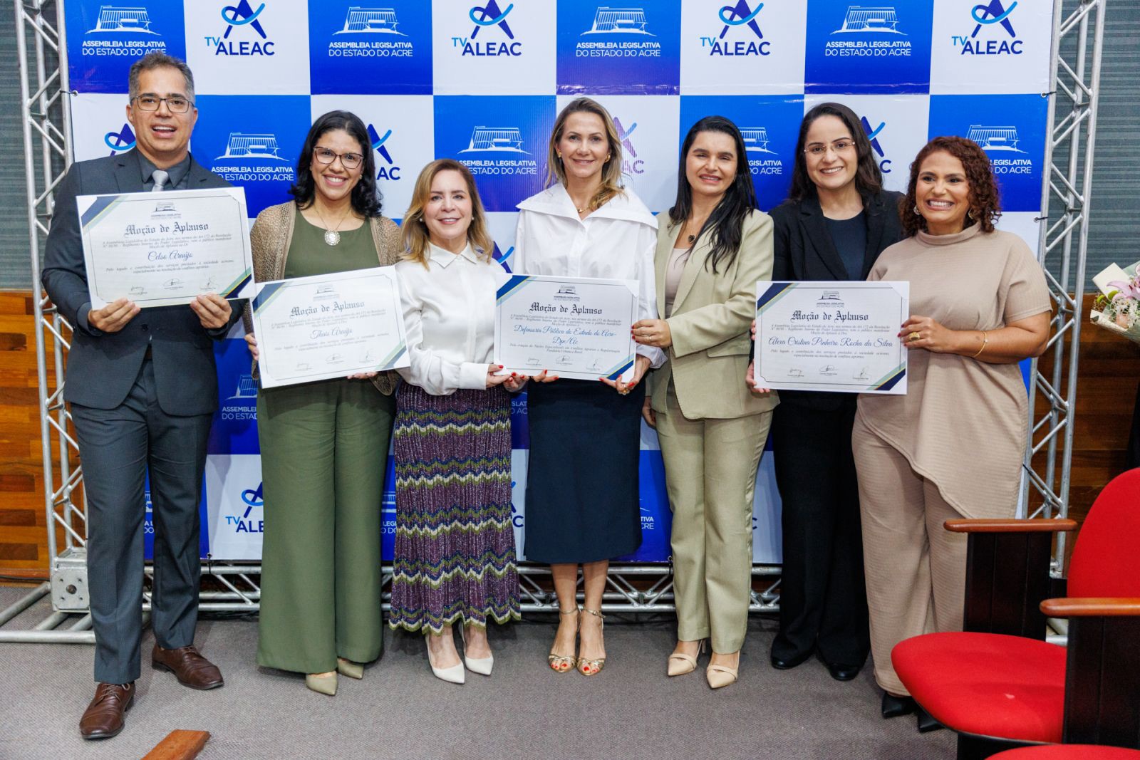 Também receberam Moção de Aplausos a subdefensora pública-geral Institucional, Thais Araújo, o coordenador de Cidadania, Celso Araújo e a defensora pública Alexa Pinheiro, chefe do Núcleo de Defesa Ambiental, Habitação, Urbanismo e Conflitos Agrários (Nahuca). A homenagem destaca o legado e a contribuição dos serviços prestados à sociedade acreana, especialmente na atuação voltada à resolução de conflitos agrários. O defensor público Celso Araújo recebeu ainda uma Moção de Aplauso em reconhecimento aos trabalhos prestados com a Rede Humanizada de Apoio a Meninas e Meninos (Rhuamm).