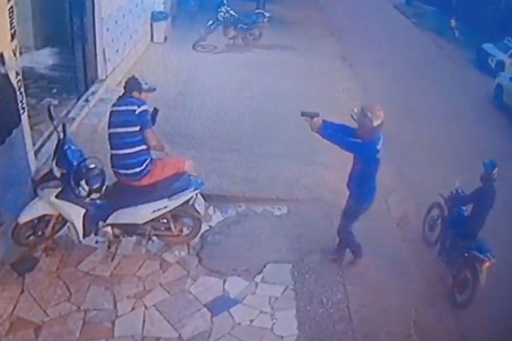As imagens mostram o momento em que o garupa desce rapidamente já armado e inicia diversos disparos contra o empresário, que não teve qualquer chance de reação. Mesmo após a vítima cair, o atirador se aproxima e continua efetuando tiros à queima-roupa, fugindo em seguida com o comparsa em alta velocidade.