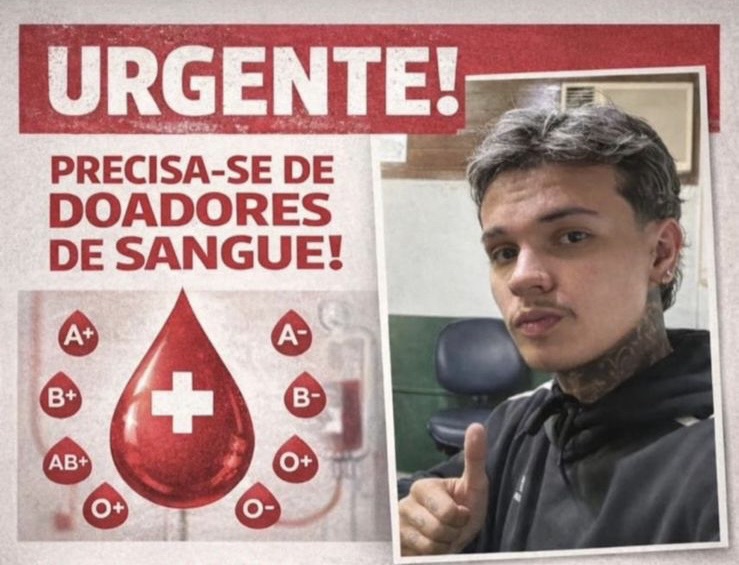 Ele está internado na Enfermaria Cirúrgica 06 do Pronto Socorro, leito 71. A orientação é que os voluntários informem o nome do paciente no momento da doação para que o sangue seja corretamente destinado.