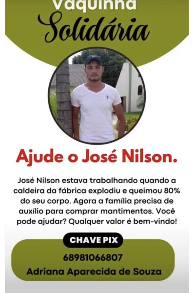 Família pede ajuda para trabalhador ferido em explosão de caldeira no Acre