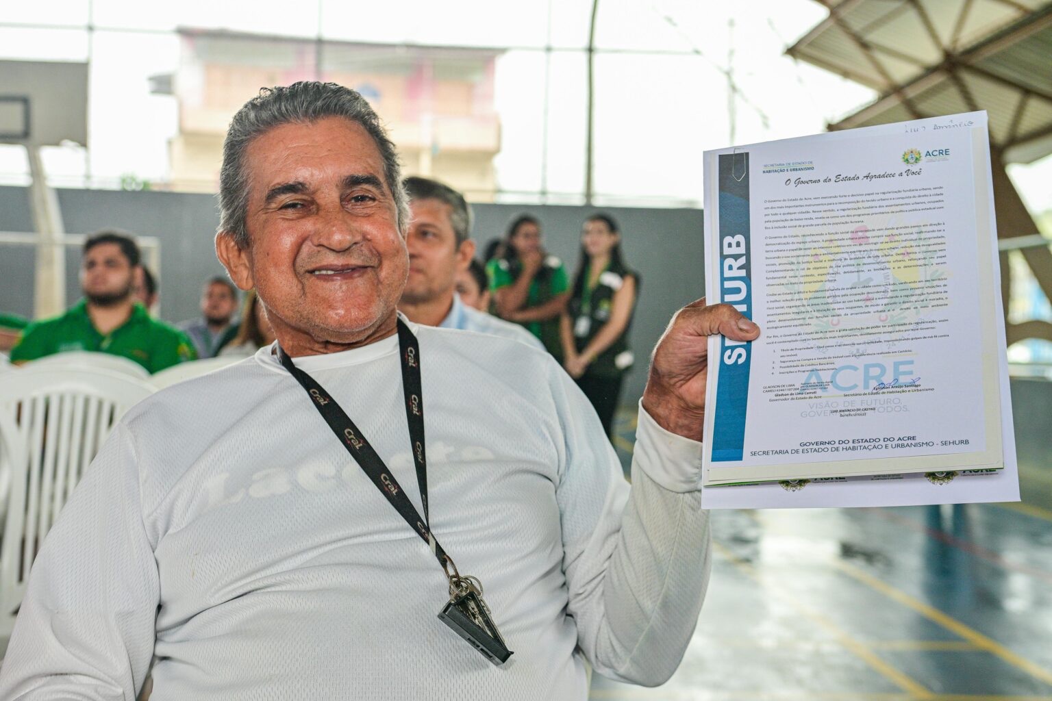 O governador do Acre, Gladson Camelí, participou da cerimônia de entrega de 186 títulos de propriedade a famílias residentes na Poligonal de Intervenção Zona de Atendimento Prioritário (ZAP 4) de Rio Branco, que contempla os bairros Floresta, João Eduardo I, Novo Horizonte e Palheiral.Do bairro João Eduardo I, o comerciante Luiz Amâncio de Castro recebeu o título de propriedade: “Tranquilidade e reconhecimento”.