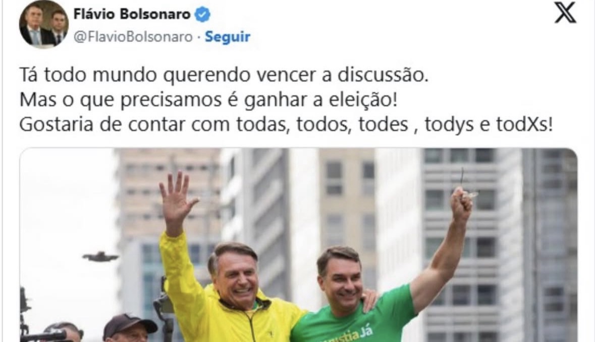 Por meio do X (antigo Twitter), o parlamentar afirmou que o foco deve estar na disputa presidencial de 2026 e não nas divergências internas. “Tá todo mundo querendo vencer a discussão. Mas o que precisamos é ganhar a eleição! Gostaria de contar com todas, todos, todes, todys e todXs!”, escreveu.