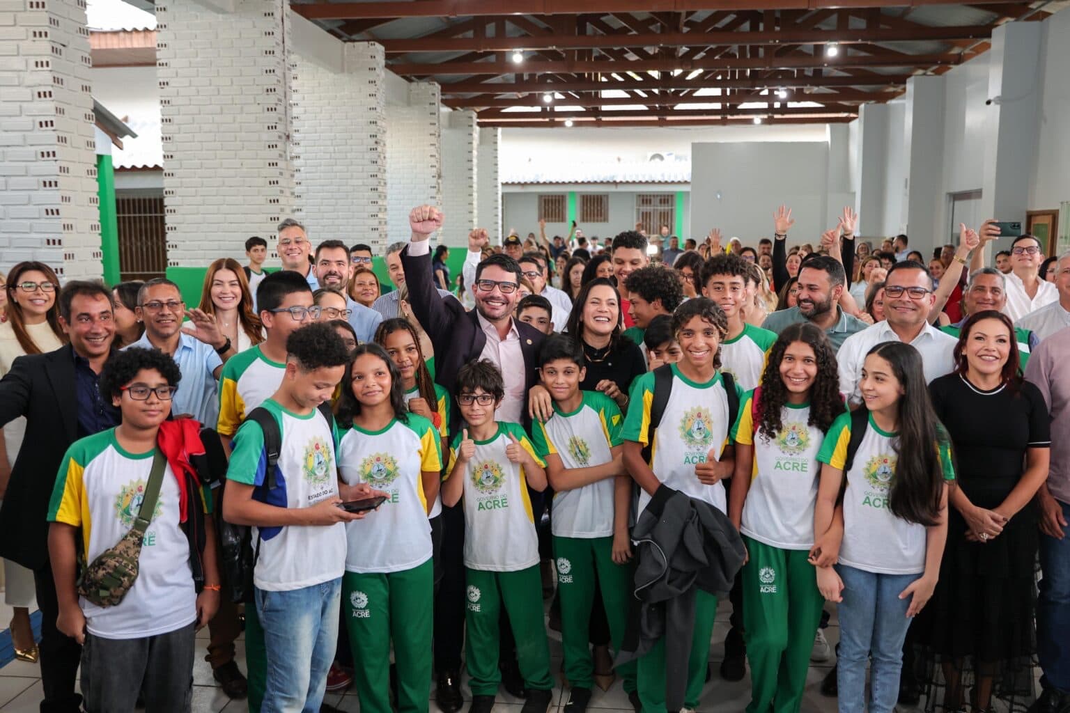 O governador Gladson Camelí, acompanhado da vice-governadora Mailza Assis, participou, na tarde desta segunda-feira, 6, do lançamento e implementação dos programas #TamoJunto e Elos – Construindo Coletivos, iniciativas voltadas à prevenção do uso de drogas e à promoção da saúde emocional entre crianças e adolescentes da rede pública de ensino do Acre, em Rio Branco.Governador e vice participaram da implementação da edição de 2025 dos programas.: