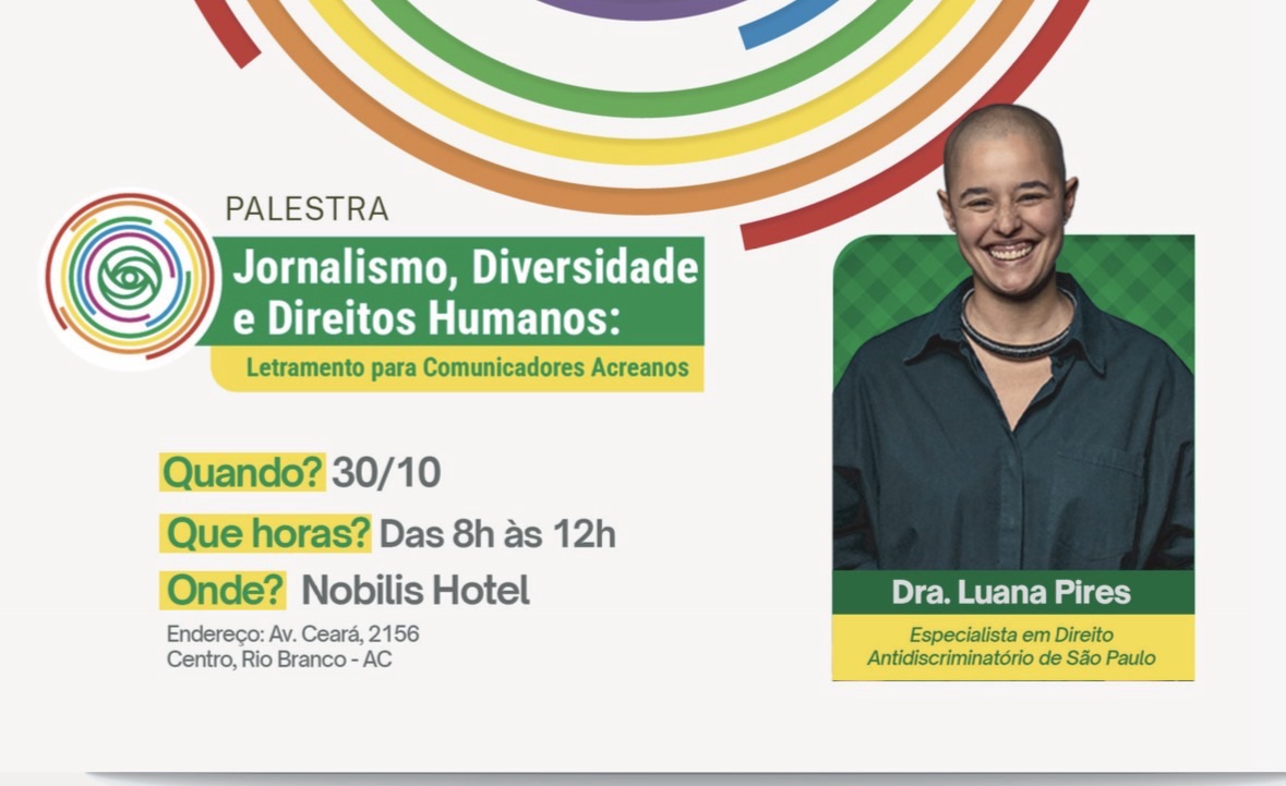 A palestra contará com a especialista em direito antidiscriminatório Luanda Pires, que abordará a importância do papel da comunicação na promoção da igualdade, no combate à discriminação e na defesa dos direitos da população LGBTQIA+. A iniciativa ajuda a construir uma comunicação que valoriza o respeito, a diversidade e os direitos de todas as pessoas.