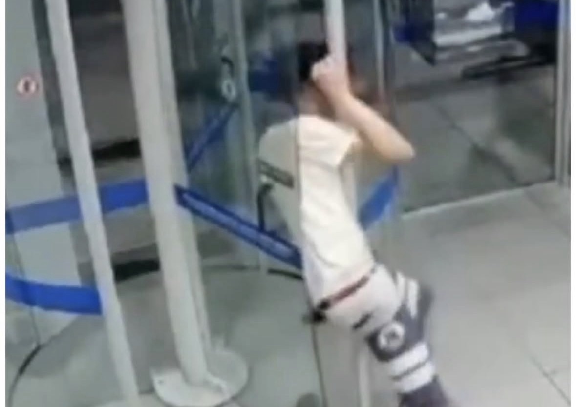 Jovem fica preso em porta giratória durante tentativa de furto a agência da Caixa