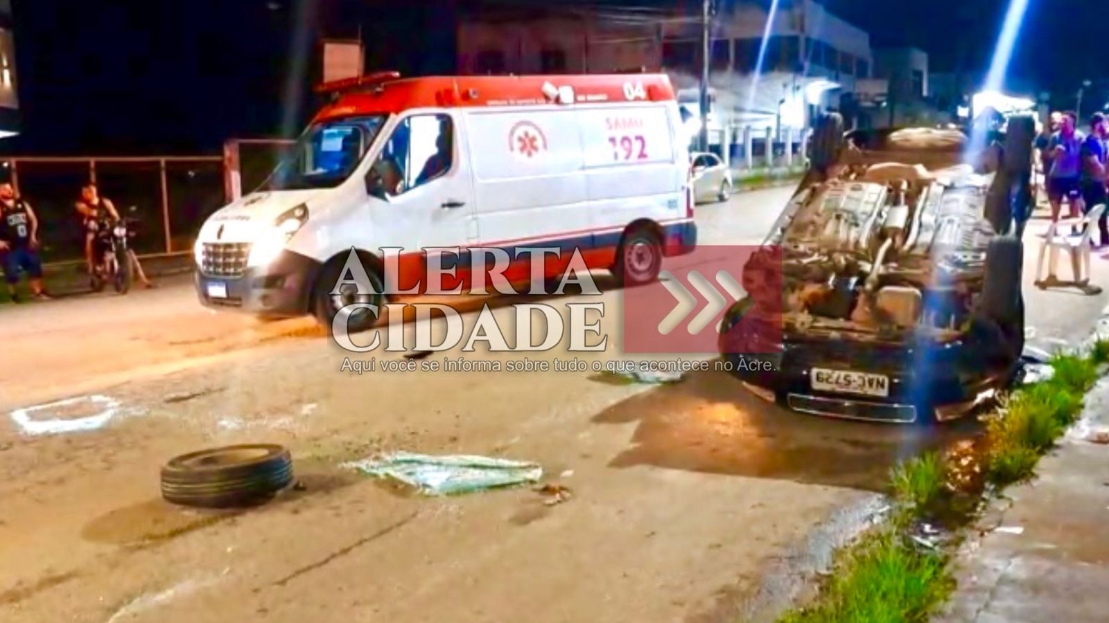 Motorista perde controle de veículo, bate em carro estacionado e capota em bairro da parte alta de Rio Branco