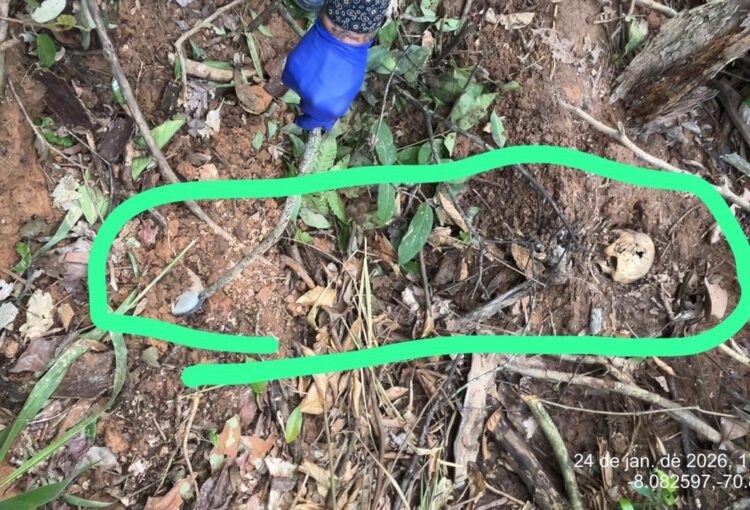 A Polícia Civil do Acre (PCAC), por meio da equipe de investigação da Delegacia-Geral de Tarauacá, realizou no último sábado, 24, a prisão em flagrante de um dos suspeitos de envolvimento em um crime de homicídio qualificado com ocultação de cadáver, ocorrido na zona rural do município, nas proximidades do Ramal do Macaco Preto.Local onde o cadáver foi encontrado enterrado em cova rasa, nas proximidades do Ramal do Macaco Preto, após indicação de um dos envolvidos no crime. Foto: cedida