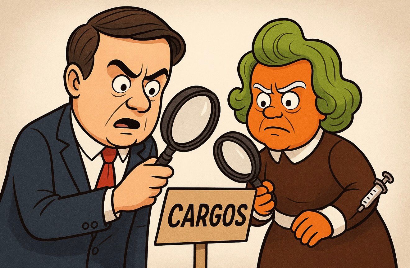 Ao seu lado está sua fiel aliada, apelidada nos corredores de “a Oompa Loompa do governo”, sempre pronta para garantir espaço e prestígio. Ela caminha com a pressa de quem vive em busca de uma nova nomeação e com a insistência de quem acredita que tudo pode ser resolvido com um cargo bem colocado. A dupla forma um espetáculo particular que poucos conseguem testemunhar.