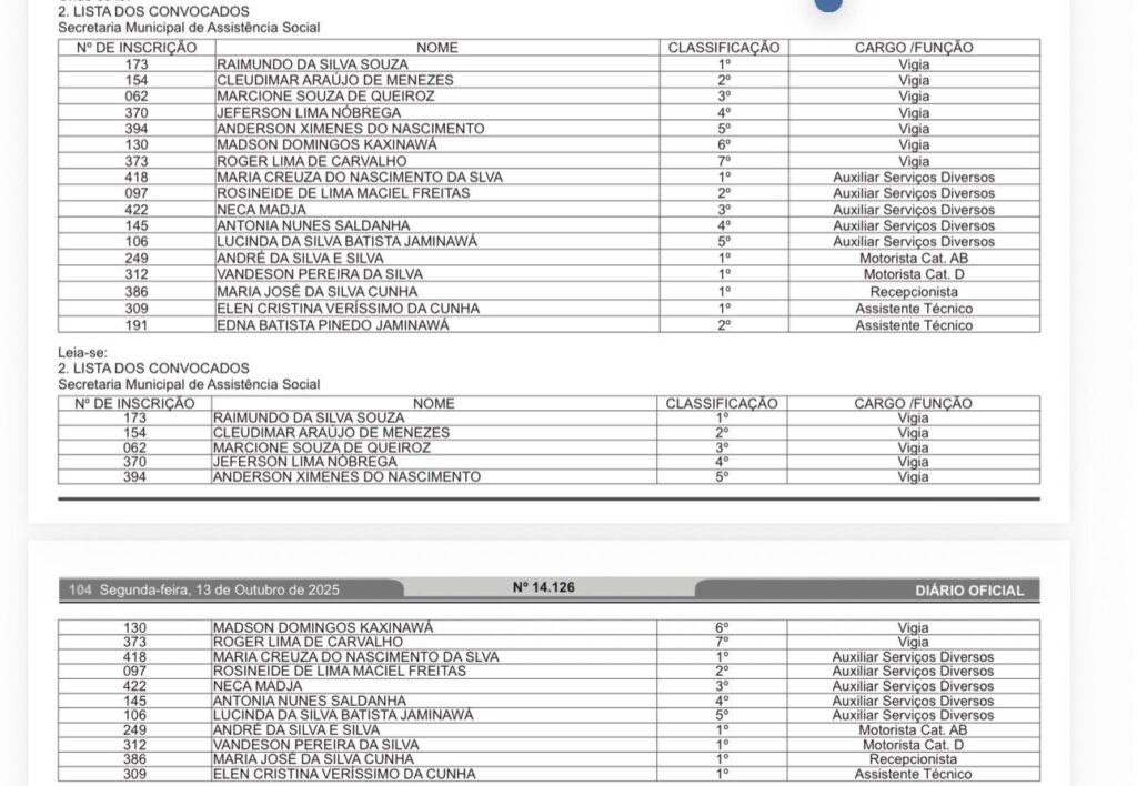 A Prefeitura de Santa Rosa do Purus, interior do Acre, publicou nesta segunda-feira (13), uma retificação ao Edital nº 04/2025/PMSRP, que convocou candidatos aprovados no Processo Seletivo Simplificado nº 01/2025.