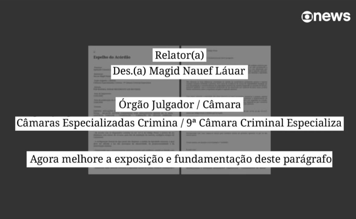 De acordo com a postagem, o caso envolve o desembargador Magid Nauêf Láuar, identificado como relator do processo na 9ª Câmara Criminal Especializada. Um dos trechos exibidos na publicação mostra a frase: “Agora melhore a exposição e fundamentação deste parágrafo”, o que, segundo a denúncia, indicaria o uso de ferramenta de inteligência artificial na elaboração do voto, sem a retirada do comando do texto final.