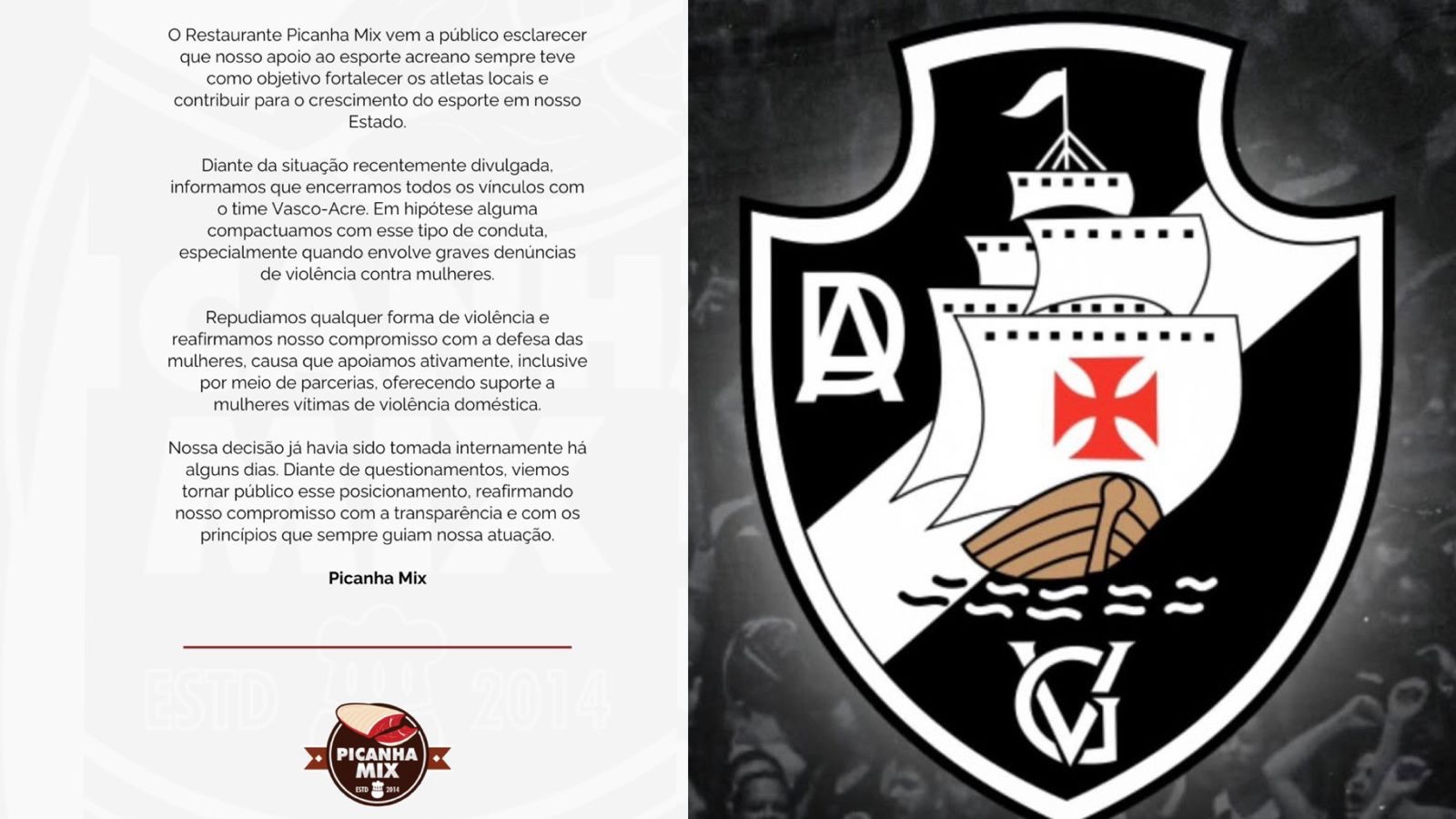 O Restaurante Picanha Mix divulgou nesta sexta-feira (20), uma nota oficial informando o encerramento de todos os vínculos com o Vasco do Acre, após a repercussão de denúncias de um suposto estupro coletivo envolvendo jogadores do time.