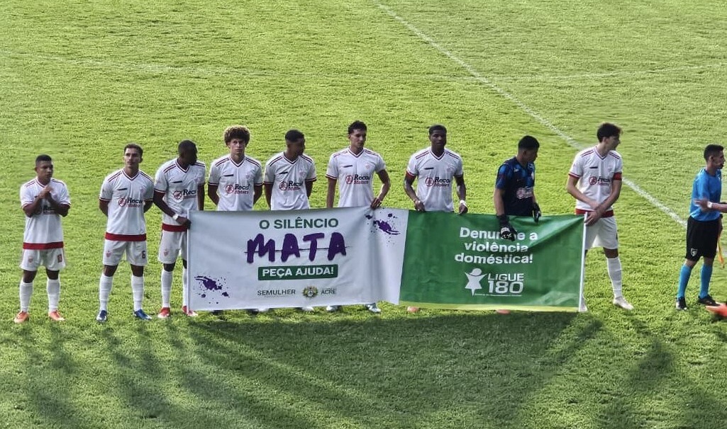 A Secretaria de Estado da Mulher (Semulher) realizou, na noite desta quinta-feira, 29, no estádio Arena da Floresta, ação de conscientização sobre o enfrentamento às práticas de violência contra a mulher durante a partida entre Rio Branco e São Francisco, válida pelo Campeonato Acreano 2026. A iniciativa utilizou a visibilidade do evento esportivo para ampliar o alcance das mensagens de prevenção, divulgação de informação e de incentivo à denúncia.Time Rio Branco apoia ação de apoio às mulheres.