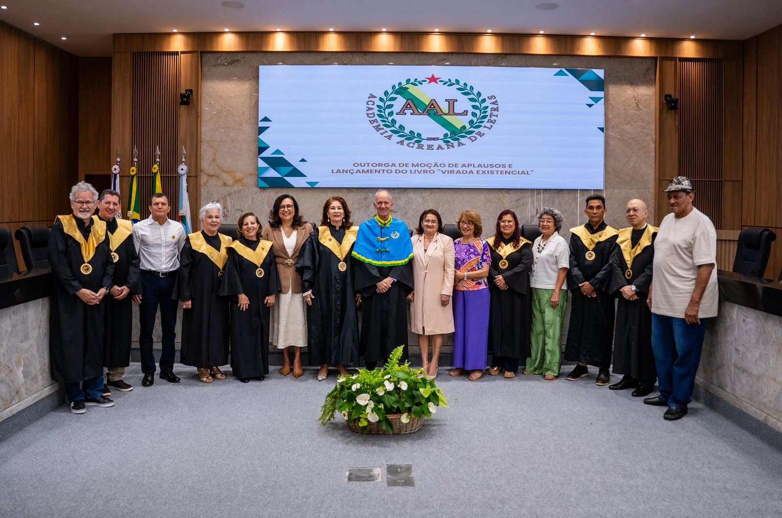 Em uma manhã marcada por emoção, sensibilidade e valorização do saber, o Tribunal de Contas do Estado do Acre (TCE-AC) e o Ministério Público de Contas (MPC) receberam, nesta terça-feira, 11 de novembro, a Sessão Solene de Moção de Aplausos promovida pela Academia Acreana de Letras (AAL). A cerimônia reuniu autoridades, acadêmicos, servidores e representantes da sociedade civil para celebrar personalidades que contribuem significativamente para o desenvolvimento intelectual e institucional do Estado.