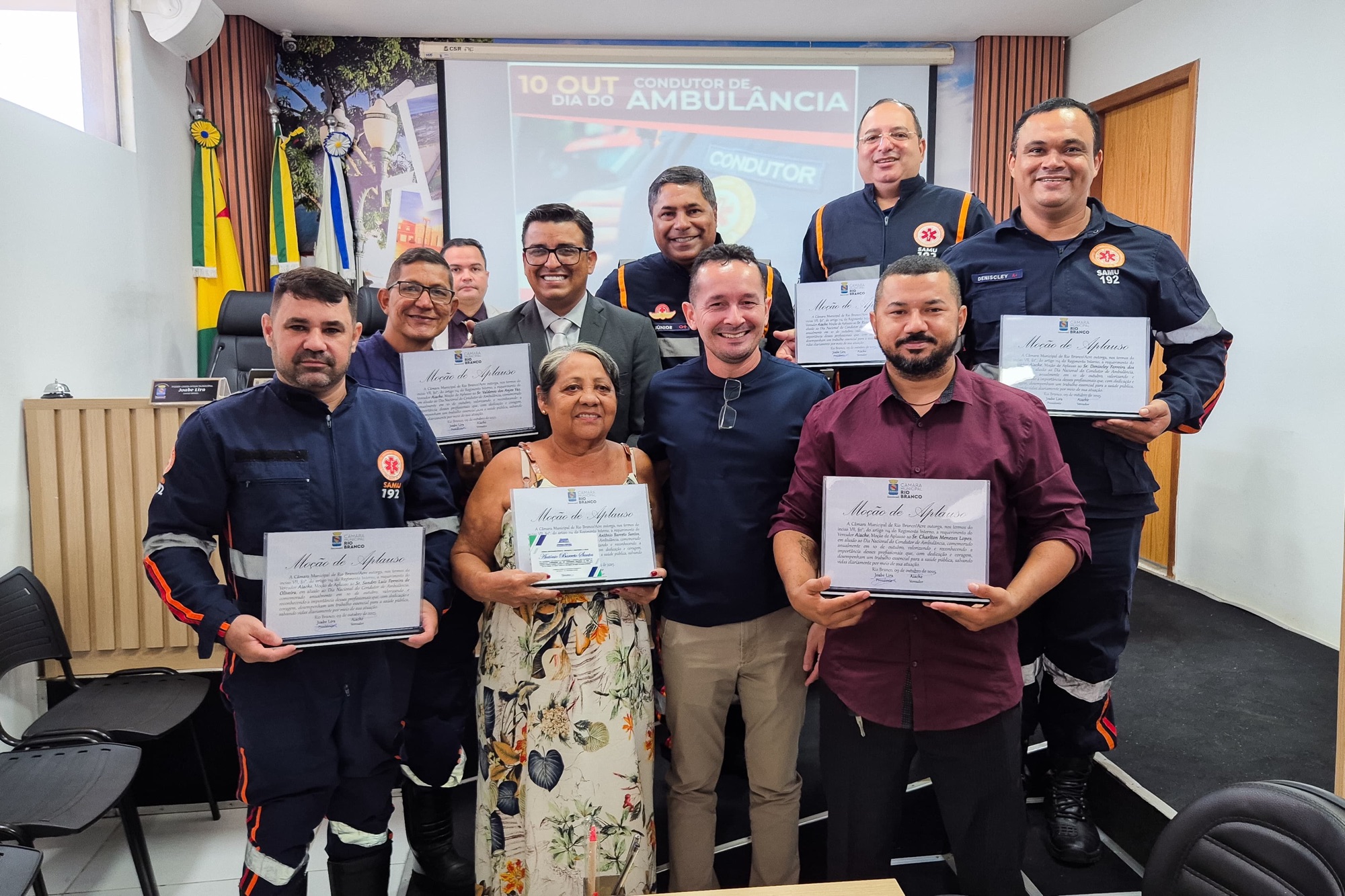 Em uma cerimônia marcada por emoção e reconhecimento, o vereador Aiache promoveu nesta quinta-feira (9), na Câmara Municipal de Rio Branco, um ato solene em homenagem aos condutores de ambulância do município. O evento teve como objetivo destacar a importância desses profissionais que, muitas vezes de forma silenciosa e anônima, são peças-chave no atendimento de urgência e emergência.