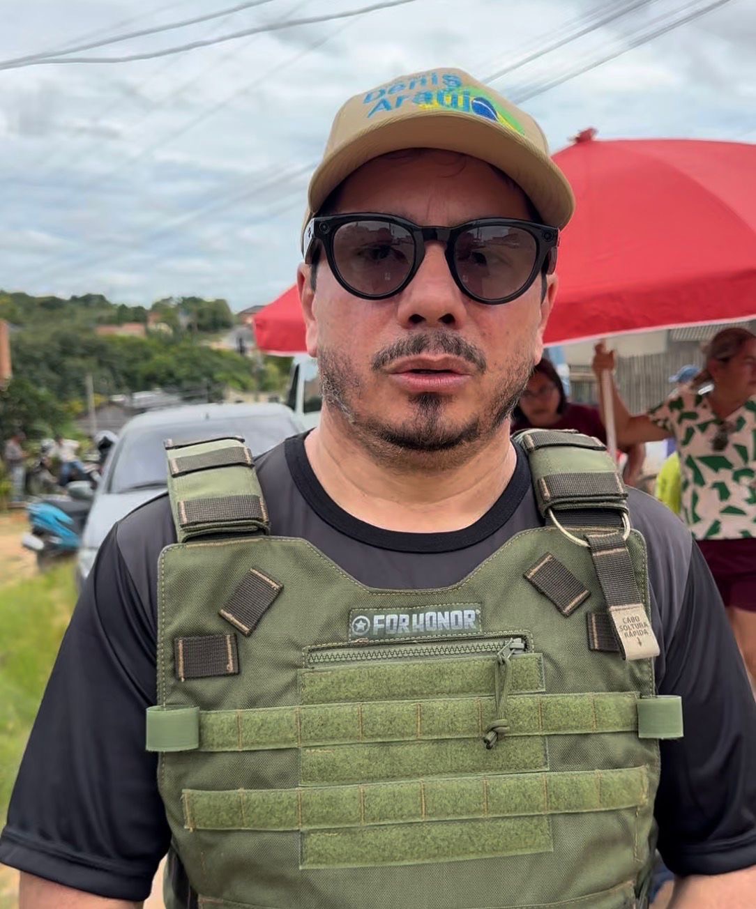 Vereador Denis Araújo usa colete à prova de balas em manifestação após relatar ameaças nas redes sociais
