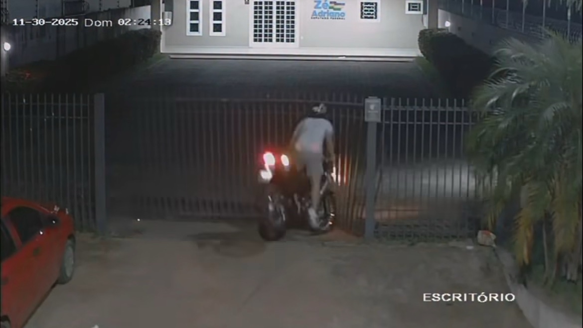 Vídeo mostra motociclista colidindo contra portão do gabinete do deputado Zé Adriano em Rio Branco